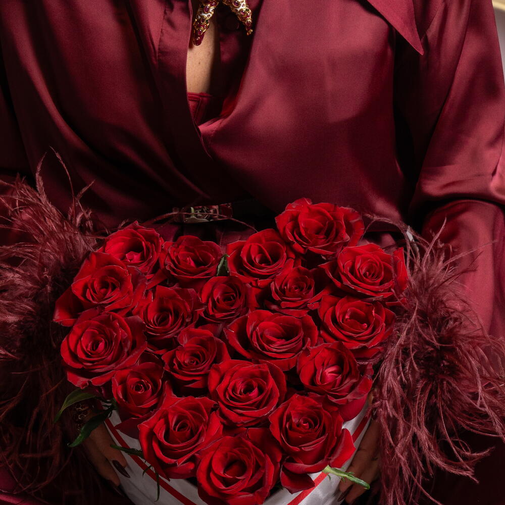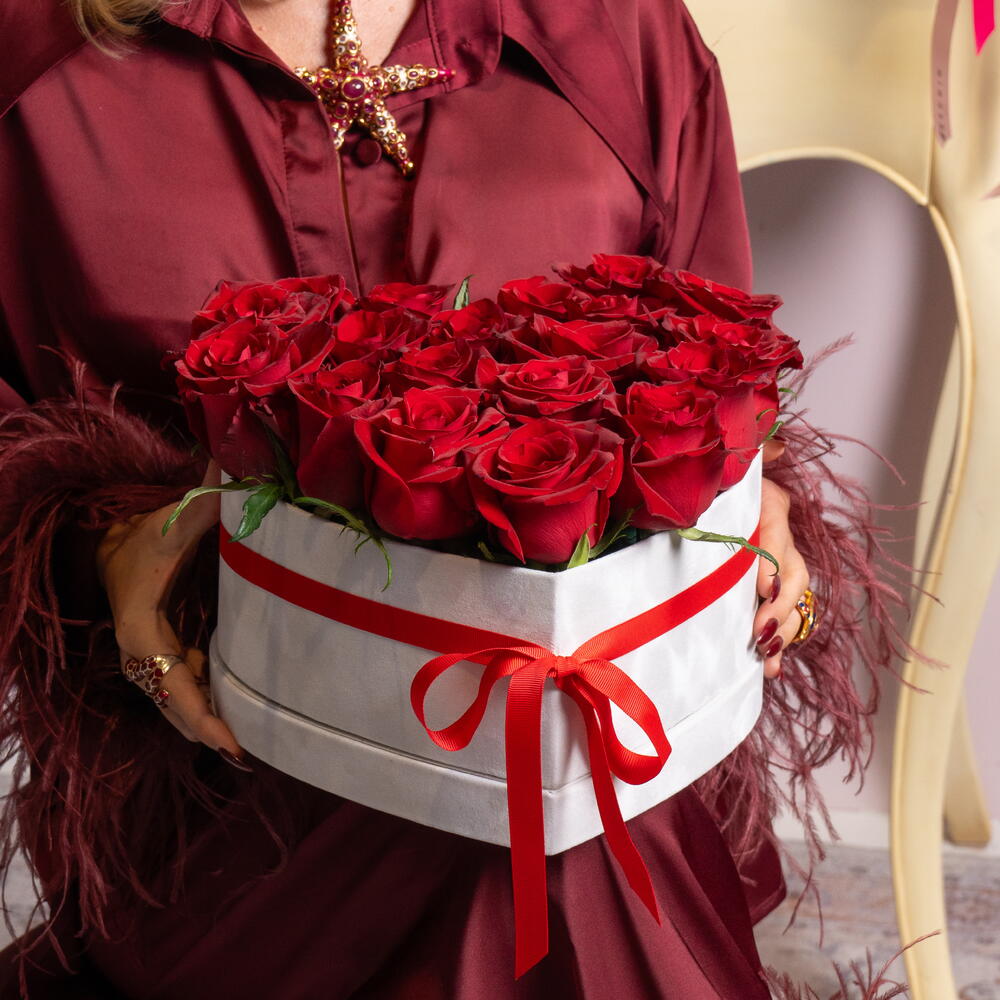 Experience the epitome of love and passion with our splendid 19 velvet red roses, luxuriously arranged in a charming heart-shaped box. Perfect as a gift, these top-notch roses will not only add beauty to any setting but also convey deep emotions, making them the ultimate expression of your affection.