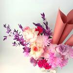 Eucalyptus - 2 pcs rose Deep purple - 3 pcs chrysanthemum pink - 3 pcs rose jumilia - 3 pcs spray rose fushia - 2 pcs