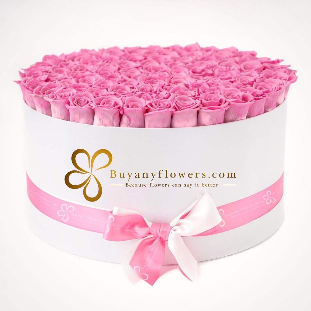 Ribbon - 1 pcs Pink rose - 121 pcs white box - 1 pcs