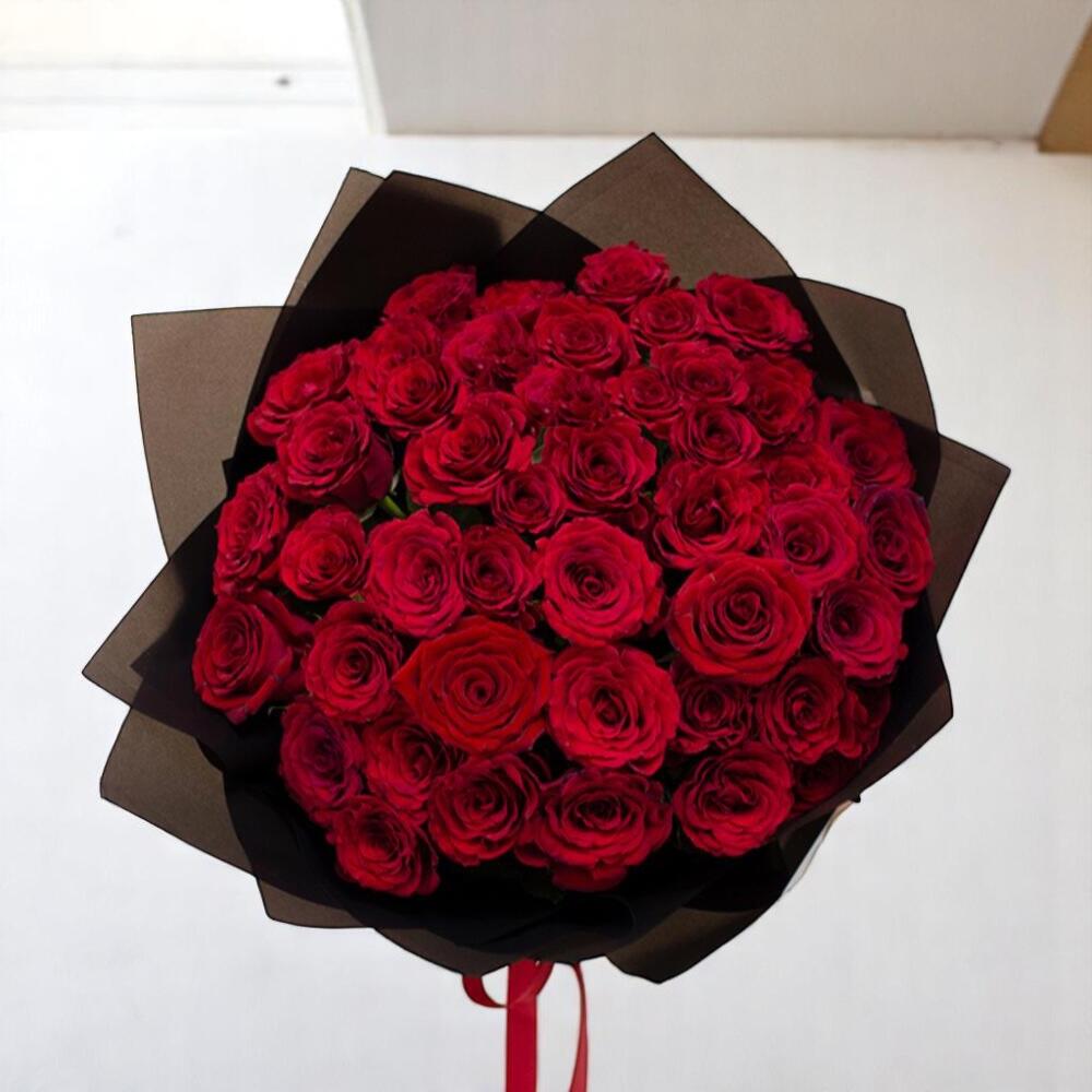 Capture timeless romance with the Elegant Love Bouquet, a breathtaking arrangement of 30 premium red roses nestled in sleek black wrapping. This bouquet is a perfect expression of passion and admiration, ideal for anniversaries, proposals, Valentine’s Day, or any heartfelt celebration. The contrast between the rich red blooms and the dark, modern wrap makes this bouquet a standout gift for any romantic occasion. Care Recommendations: To keep your red roses fresh and vibrant, place them in a clean vase filled with cool water immediately upon receiving. Trim each stem at a diagonal angle before arranging, and remove any leaves below the waterline. Change the water every two days and keep the bouquet out of direct sunlight and away from heat sources for maximum longevity.
