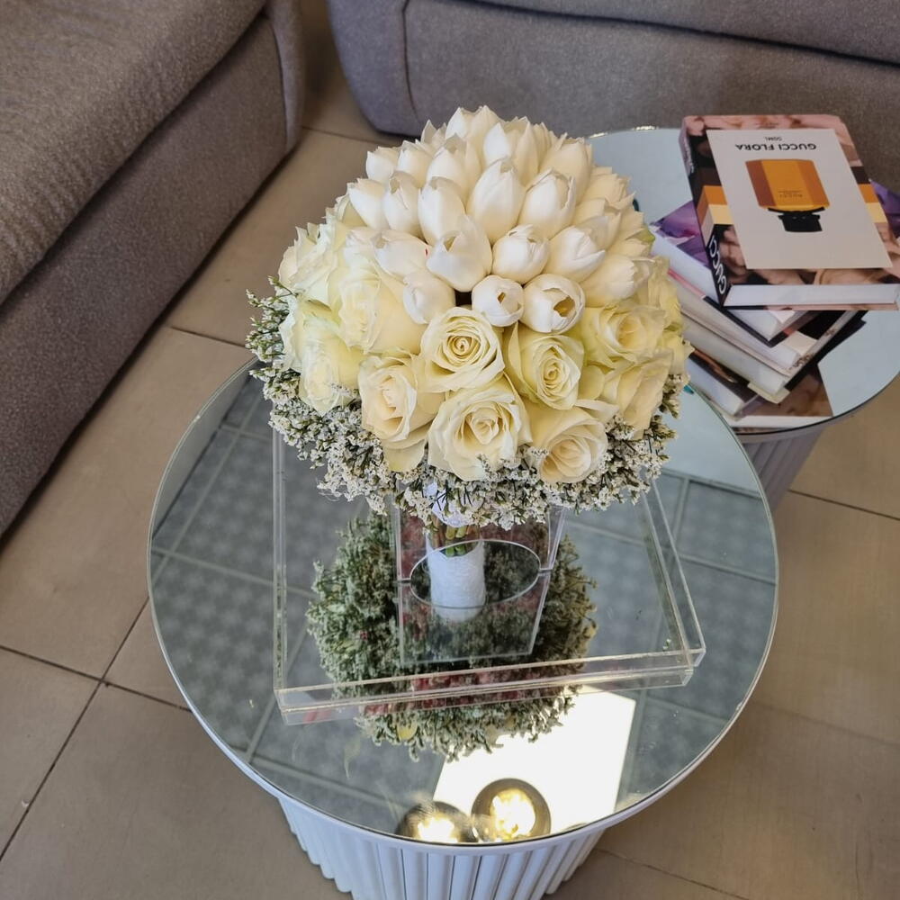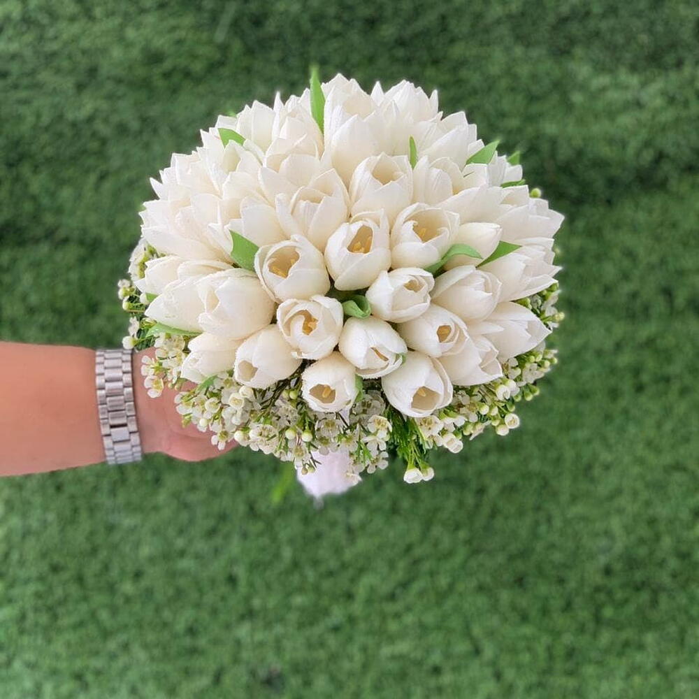 Gypsophila - 3 pcs white ribbon - 1 pcs white tulip - 51 pcs