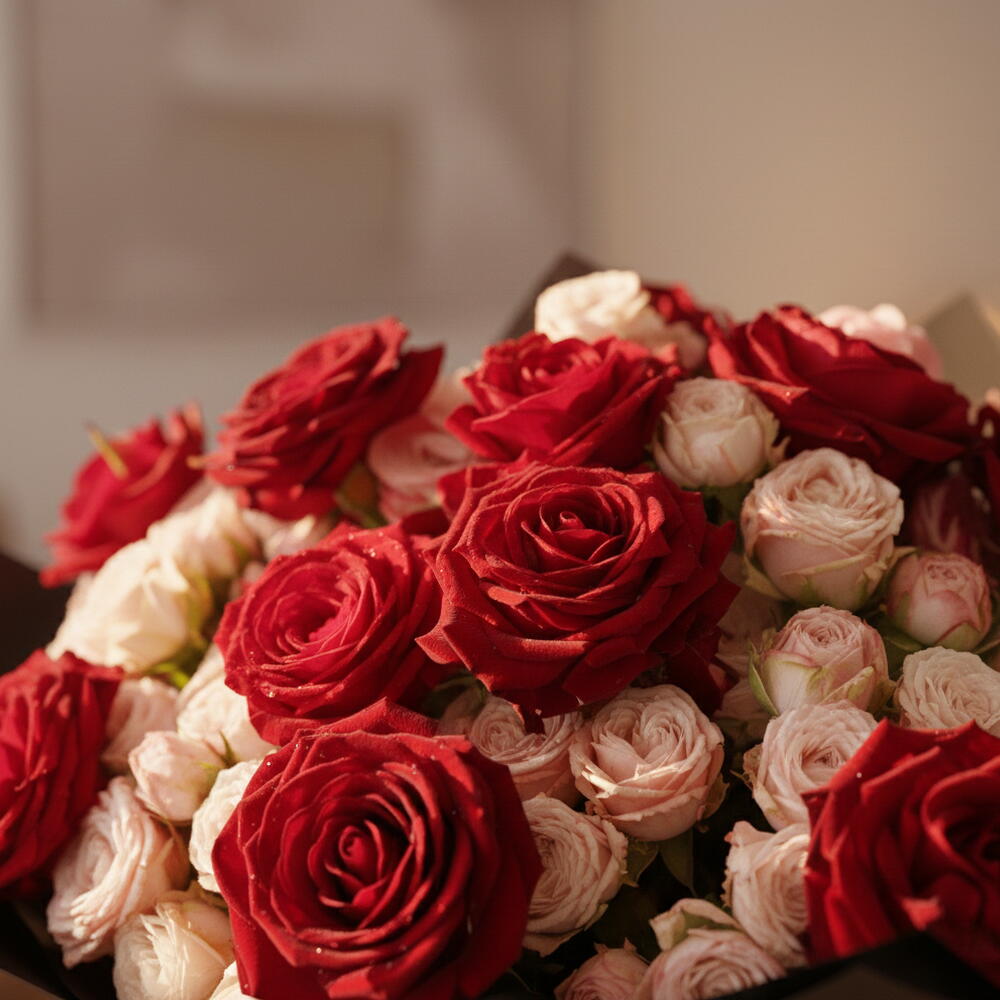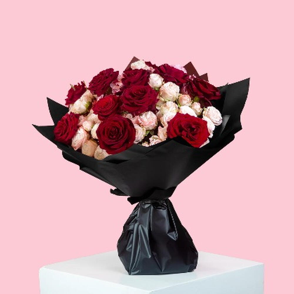 Red rose - 12 pcs pink spray rose - 12 pcs