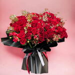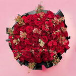 Presenting the Lucky Girl Bouquet, a breathtaking blend of passion and elegance featuring 70 vibrant red roses, 20 enchanting garden roses, and 10 delicate wax flowers. This exquisite arrangement is a symbol of deep love and good fortune, meticulously crafted to captivate and delight. With its luxurious presentation, the Lucky Girl Bouquet is the perfect gift for expressing profound emotions on special occasions. Make a statement that transcends words with this timeless and unforgettable floral masterpiece. Make this Valentines Day unforgettable with the Lucky Girl Bouquet from Blush and Petals Flower Shop.