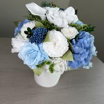 ✨ Premium real flowers that last a year ✨ Luna is a poetic expression of natural beauty, evoking the softness of a gentle breeze through a blooming garden. This exquisite arrangement features bio-preserved white Classic Garden roses, Hydrangeas and greens. Set in a modern white ceramic vase, Luna brings an effortless sense of movement and grace to any space. Designed to last for over a year, this preserved floral arrangement is perfect for luxury interiors, refined gifting, and timeless home décor. This piece is crafted exclusively from 100% natural flowers that have been bio-preserved to last up to one year without the need for water or maintenance. Each arrangement is uniquely designed with love by our in-house florists 🌺