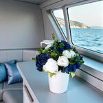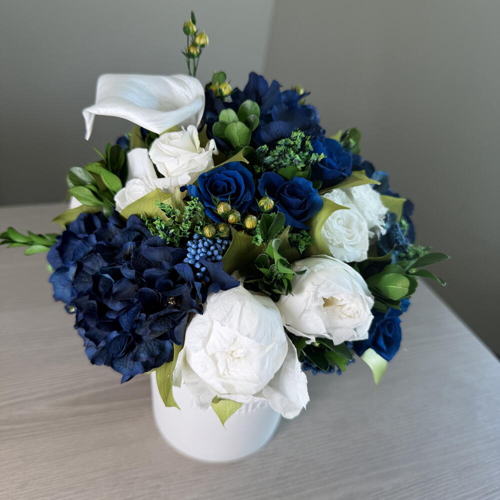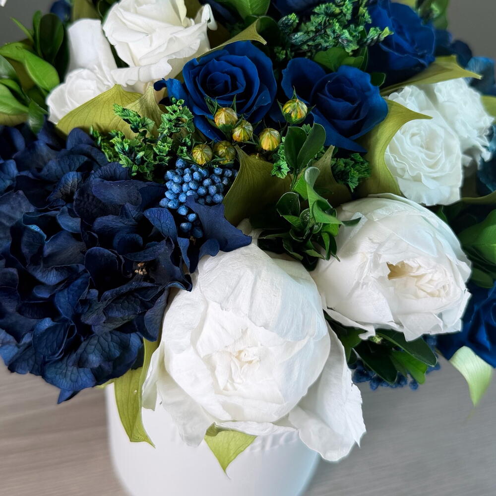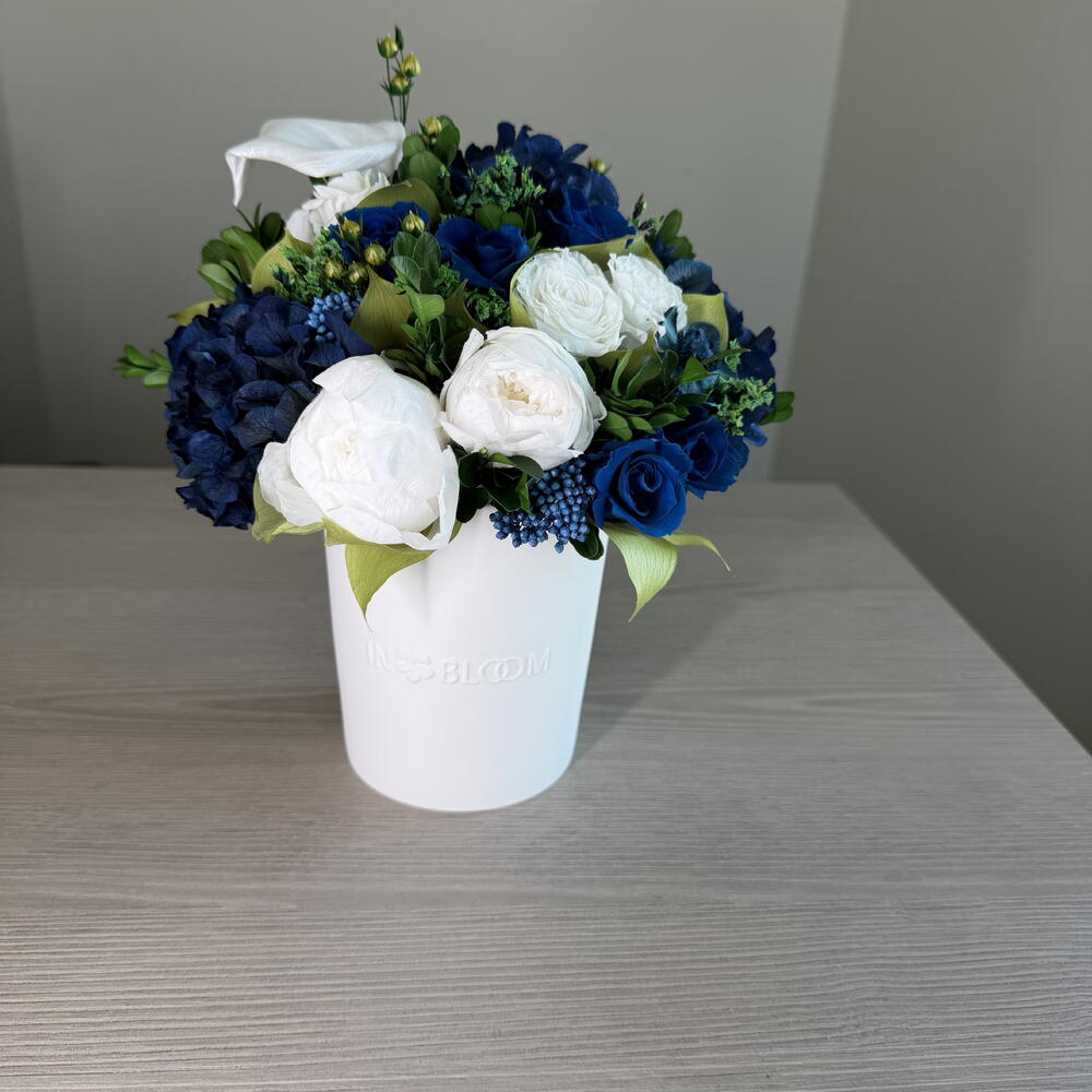 ✨ Real flowers that last a year ✨ Luna is a poetic expression of natural beauty, evoking the softness of a gentle breeze through a blooming garden. This exquisite arrangement features bio-preserved white Classic Garden roses, Hydrangeas and greens. Set in a modern white ceramic vase, Luna brings an effortless sense of movement and grace to any space. Designed to last for over a year, this preserved floral arrangement is perfect for luxury interiors, refined gifting, and timeless home décor. This piece is crafted exclusively from 100% natural flowers that have been bio-preserved to last up to one year without the need for water or maintenance. Please note that each arrangement is uniquely designed by our in-house florists, so natural variations in color, shape, and composition are to be expected.