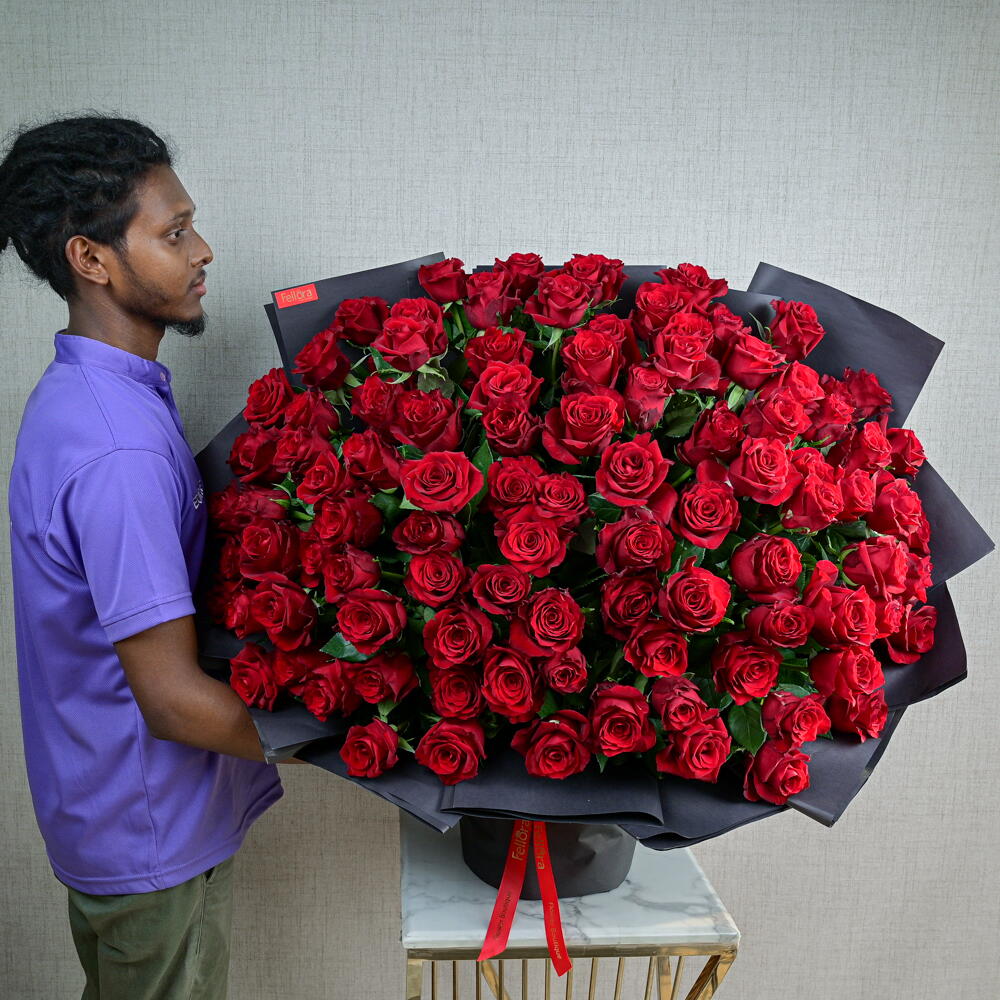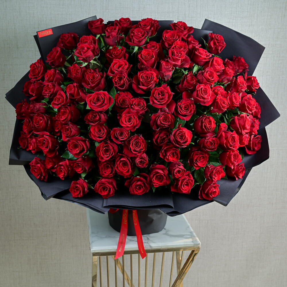 Celebrate Valentine’s Day with a luxurious arrangement of 101 premium red roses, symbolizing deep love and passion. Expertly crafted for a grand and unforgettable romantic gesture. The perfect Valentine’s Day flower gift to express timeless love and devotion.