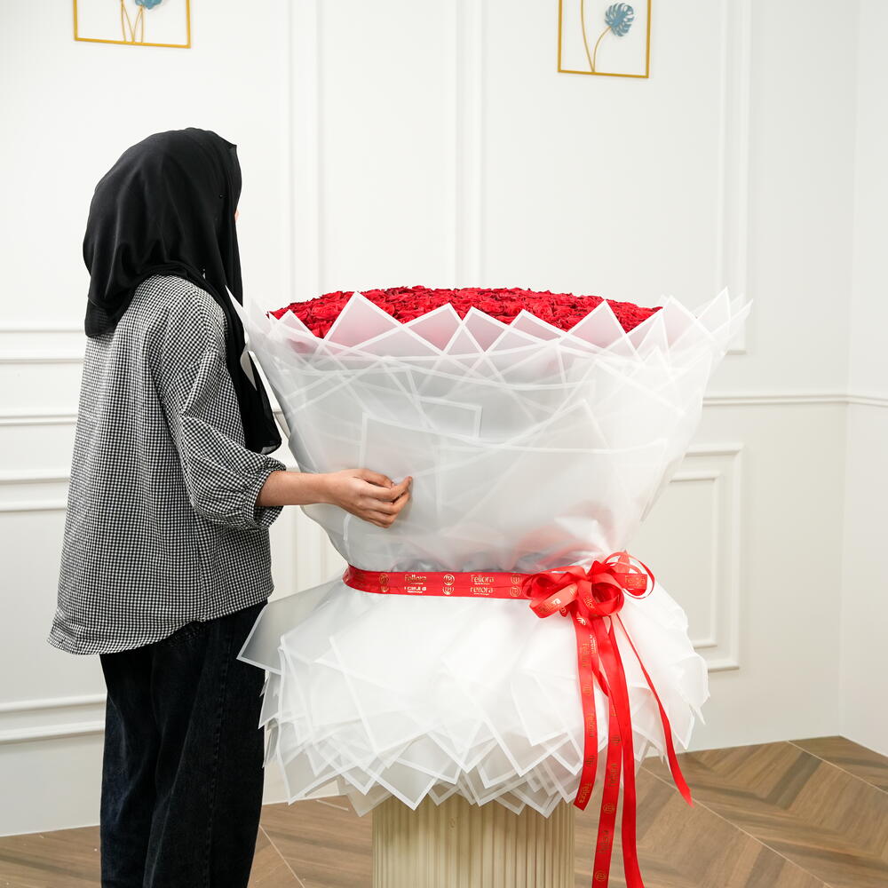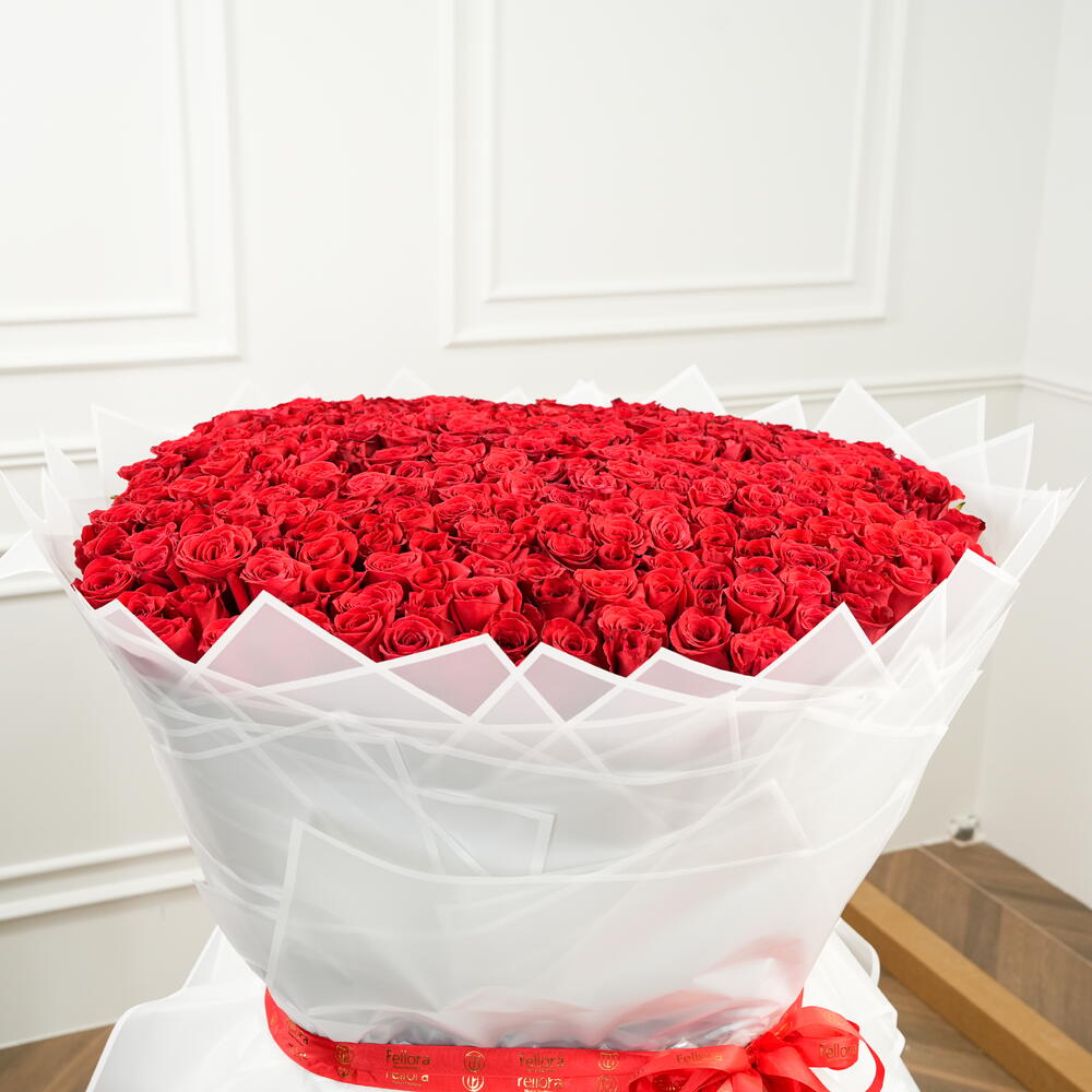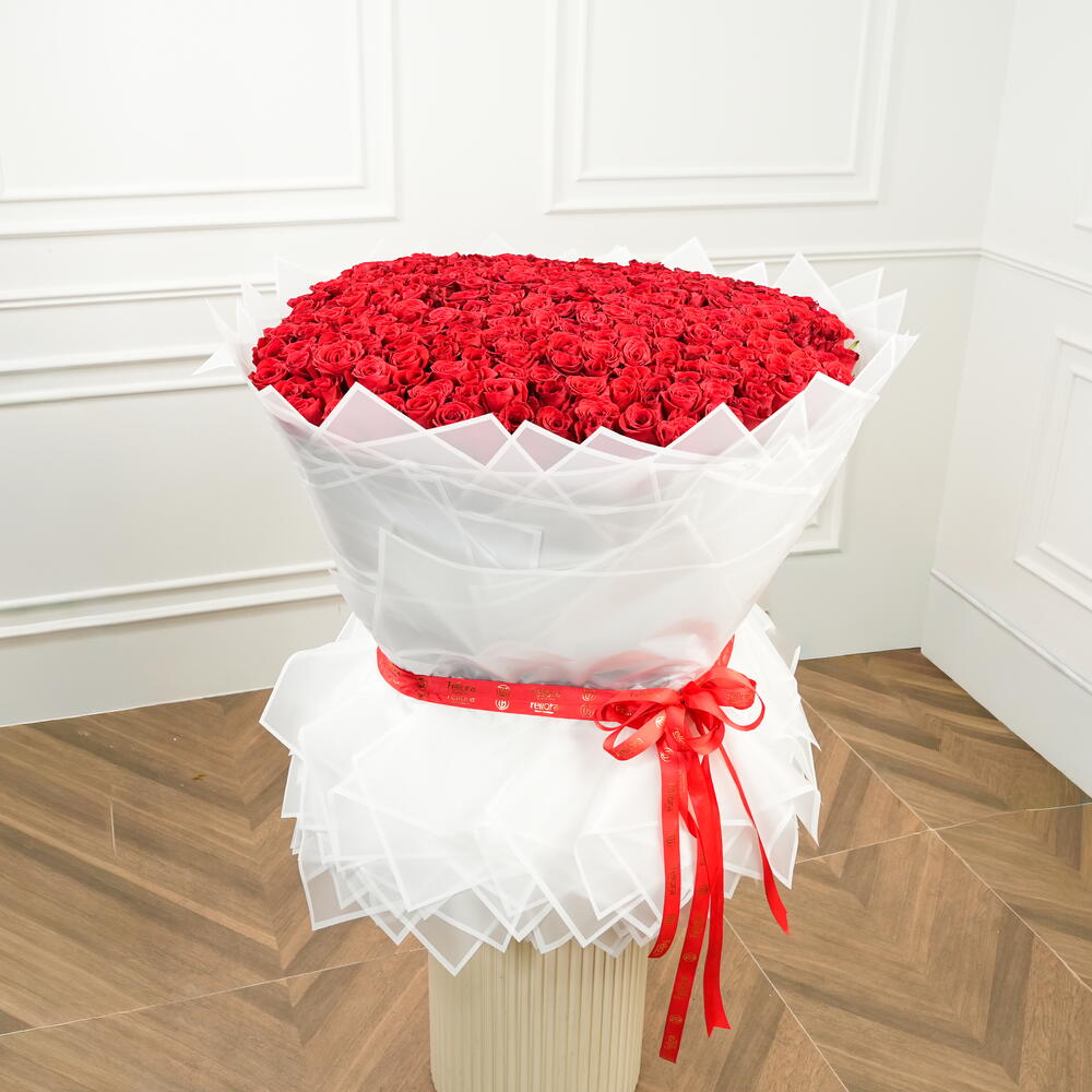 301 Premium Red Roses Arrangement – a breathtaking luxury bouquet designed to impress. Handcrafted with fresh, velvety red roses wrapped in elegant white premium paper. Perfect for proposals, anniversaries, Valentine’s Day, and grand romantic surprises. Order this majestic 301 red roses bouquet for same-day delivery in UAE. 🌹