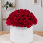 A flawless ensemble of velvety red roses, expertly arranged in a pristine white hatbox, this arrangement makes a bold and timeless statement. Ideal for anniversaries, Valentine’s Day, or as a luxurious gesture of love and admiration. Let your message be as unforgettable as these blooms.