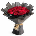 35 Premium Red Roses Wrapped in Striking Black Paper.