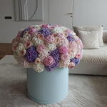 An opulent arrangement, this luxury box overflows with the tranquil beauty of hydrangeas, the lush fullness of peonies, and the delicate charm of garden roses. It embodies feelings of serene elegance, deep admiration, and pure joy. This stunning gift is perfect for celebrating a special milestone, an important anniversary, Mothers Day, or simply to offer a luxurious expression of gratitude.