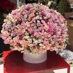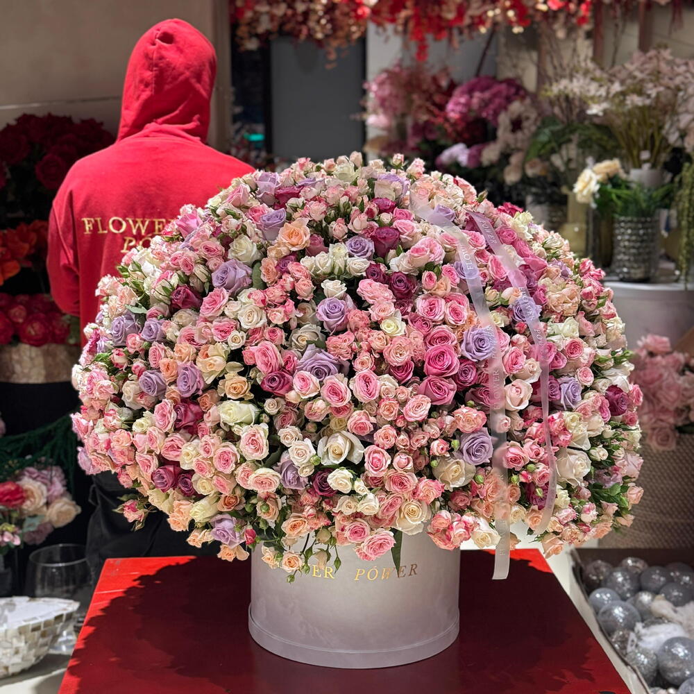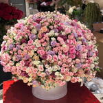 An exquisite luxury basket arrangement featuring garden roses and spray roses, designed in a soft pastel palette. This voluminous composition is created from hundreds of fresh blooms in blush pink, cream, nude, and lavender shades, forming an elegant “flower cloud” with rich texture and a delicate natural fragrance. The basket is styled in a refined, minimalist design and makes a stunning choice for: • birthdays • anniversaries • weddings • romantic surprises • luxury and VIP gifts • impressive gestures without an occasion We use only premium-quality roses, hand-selected by professional florists to ensure long-lasting freshness and a flawless presentation. Each arrangement is crafted with attention to detail and luxury aesthetics. Same-day delivery available. Photo before delivery upon request.