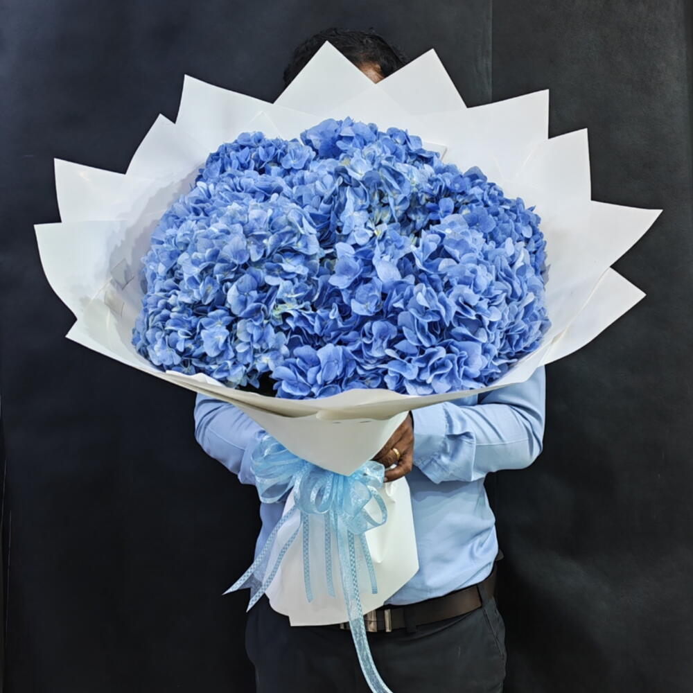 7 Stems Blue Hydrangea Bouquet 🌸 Elegant, dreamy, and timeless — our 7 Stems Blue Hydrangea Bouquet is a true statement of beauty and grace. Each stem of lush blue hydrangea is carefully handpicked and artistically arranged to create a soft, voluminous look that exudes sophistication. Perfect for expressing love, gratitude, and admiration, this bouquet suits any occasion — from birthdays and anniversaries to weddings, congratulatory gifts, or corporate events. Wrapped in luxury paper and finished with a delicate ribbon, this bouquet captures the calm and charm of blue hues, symbolizing peace, harmony, and heartfelt emotions. 💫 💐 Ideal For: Birthdays Anniversaries Weddings Engagements “Thank You” “Congratulations” gifts Home office decor