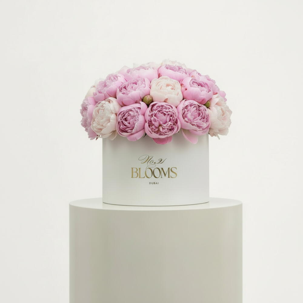 Elegant 35 fresh mix color peonies arranged in a luxurious gift box, perfect for birthdays, anniversaries, or special occasions. Vibrant, fragrant, and long-lasting blooms with premium presentation, delivered across Dubai.