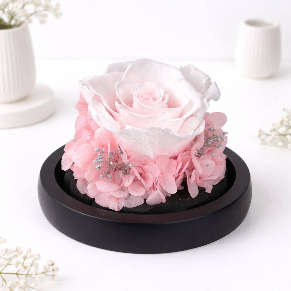 This product features an exquisite pink rose, carefully preserved to maintain its natural beauty and delicacy. The rose is nestled in a stylish box, making it the perfect gift or decorative piece. This piece of everlasting floral artistry will add a touch of elegance and charm to any ambiance. Ideal for home decoration, office decor or gift giving, this preserved rose will keep its radiance and texture for an incredibly long time, allowing you to treasure it for years to come.