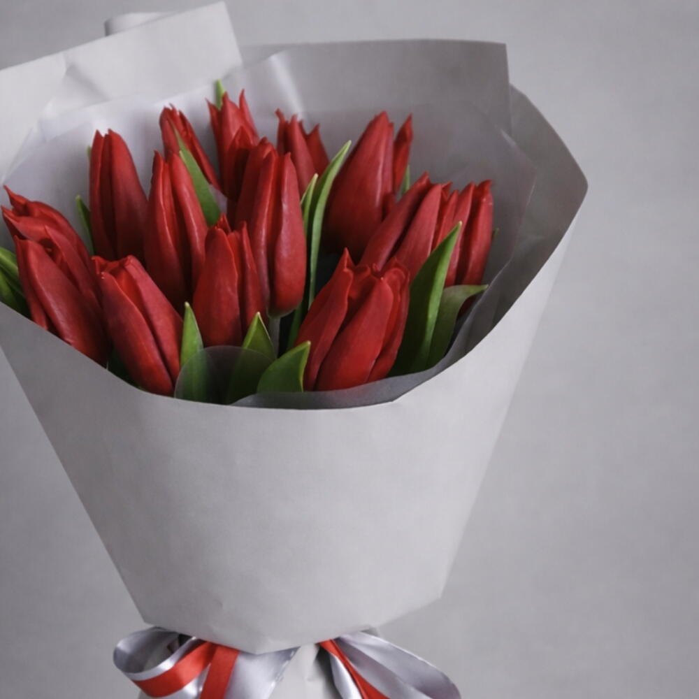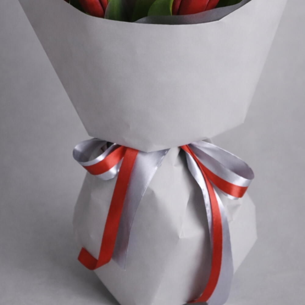 Wrapping - 2 pcs krizal - 1 pcs rebbon - 2 pcs dark red tulips - 15 pcs