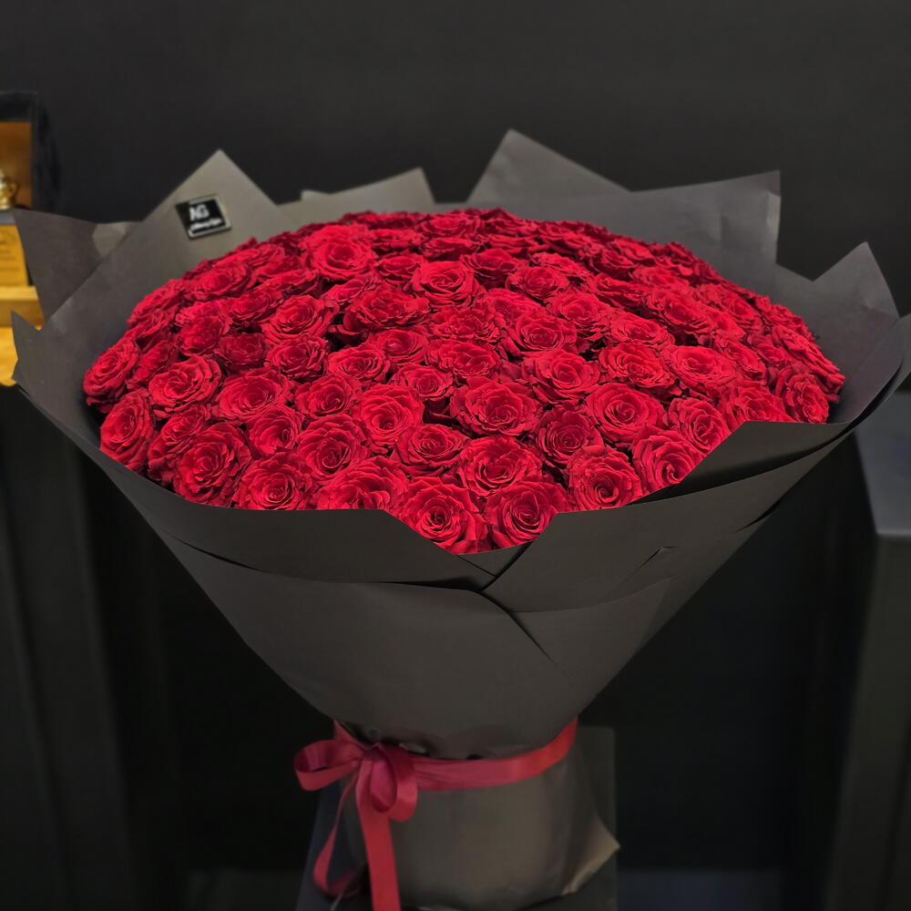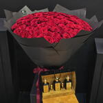01 Red Roses with Qissa Perfume Collection Gift Set This breathtaking gift set is designed to express your deepest love and admiration in the most unforgettable way. It features 101 premium red roses, symbolizing profound passion, love, and commitment. The roses are elegantly arranged to create a stunning display, perfect for making a grand gesture on any special occasion. Along with the roses, this luxurious gift includes a Qissa perfume collection, a set of exquisite fragrances that add an extra layer of elegance and sophistication. The collection is thoughtfully curated to enhance the gift, providing a timeless scent that resonates with love and romance. Presented in an elegant gift box, this is the perfect combination of natural beauty and luxurious fragrances, making it an ideal choice for celebrating love, whether its for Valentines Day, an anniversary, or any meaningful moment.