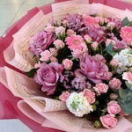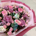 Statice - 3 pcs Spray rose - 10 pcs Gerbera - 3 pcs mothiola - 2 pcs roses - 10 pcs