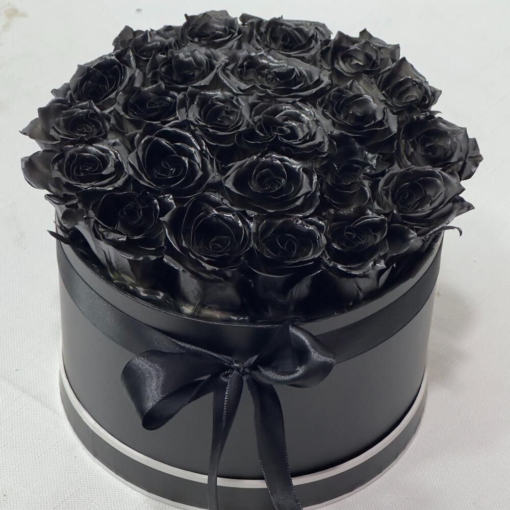 Step into a realm of bold beauty and unmatched elegance with our exclusive Black Sprayed Roses Box. Featuring 21 stunningly sprayed black roses, each bloom is hand-selected and artistically treated to radiate depth, mystery, and modern sophistication. Cradled in a sleek luxury box, these textured beauties exude drama and allure—perfect for those who dare to express emotion in the most unconventional way. Whether gifted as a statement of deep love, eternal admiration, or artistic appreciation, or used as a centrepiece to mesmerize your guests, this arrangement commands attention. Why You’ll Love It: 🌹 21 premium black sprayed roses – rare and dramatic 🖤 Delivered in an elegant presentation box for instant impact 🎁 Ideal for anniversaries, romantic surprises, luxury events, or avant-garde home décor ✨ Makes a powerful statement without saying a word Let this daring box of black roses be your declaration of bold emotion—timeless, elegant, unforgettable.