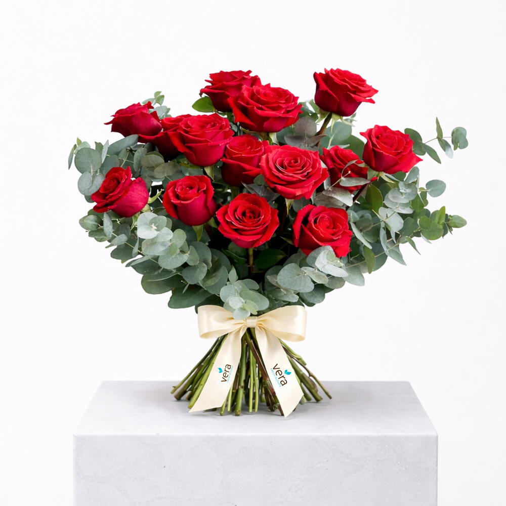 Red rose - 15 pcs Eucalyptus - 6 pcs