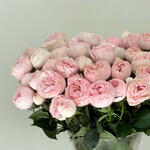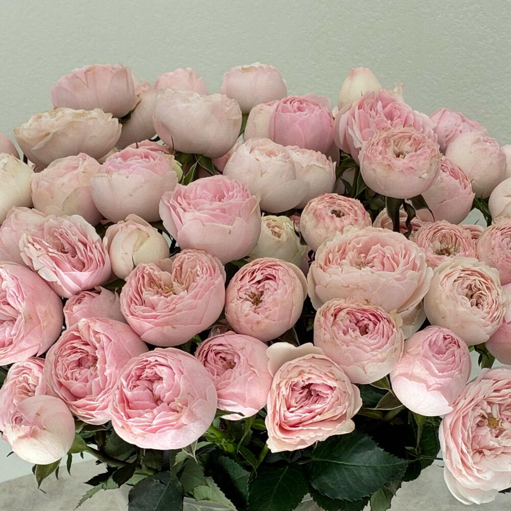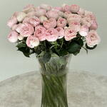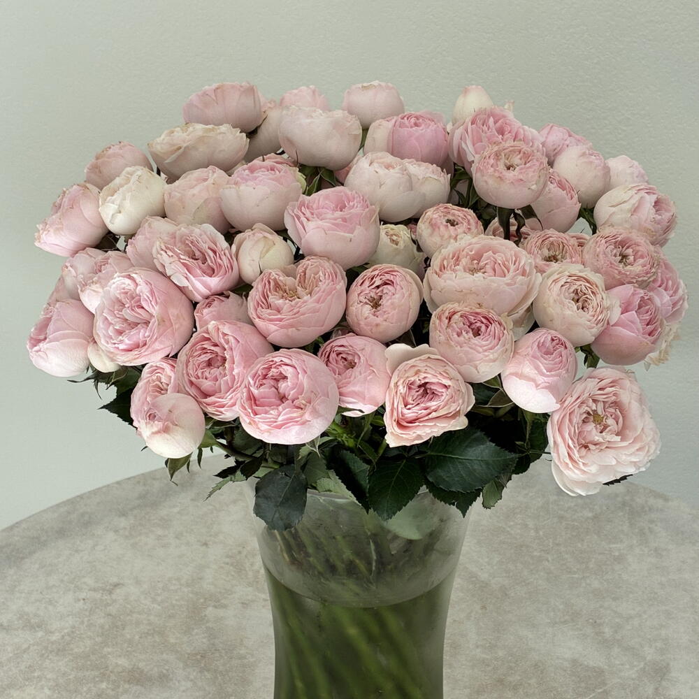 A luxurious interior arrangement composed of lush blush pink peony-style roses, known for their full, layered petals and soft romantic texture. The dense, rounded shape creates a statement of elegance while maintaining a calm and refined presence in the space. The delicate pink tones add warmth and softness, making this arrangement perfect for sophisticated interiors. Displayed in a clear glass vase, the flowers highlight natural beauty and balance, blending seamlessly into both modern and classic environments. Ideal for living rooms, dining areas, master bedrooms, hotel suites, reception areas, and premium offices, this floral arrangement brings a feeling of comfort, harmony, and quiet luxury.