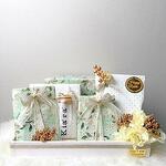 This premium hamper is a dream come true for every matcha lover, blending wellness, indulgence, and elegance. Thoughtfully curated, it includes organic matcha green tea powder, gourmet treats like baked pretzels, wafer chocolates from Ms. Café, and almond rocks, along with a complete 7-piece matcha set. The set features a traditional matcha bowl, bamboo whisk, scooper, whisk holder, stainless steel sifter, and a tea mat—everything needed to create the perfect matcha ritual at home. A customized glass cup with lid and straw adds a modern, personal touch. Beautifully packed and decorated, this hamper is ideal for birthdays, festive gifting, or as a luxurious self-care treat. To maintain freshness, store the edible items in a cool, dry place. 🍵✨