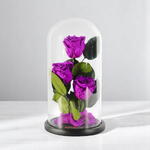 Add a touch of luxury and elegance to your space with this exquisite display of preserved purple roses. Encased in a sleek, crystal-clear dome, these vibrant purple blooms stand as a symbol of admiration, creativity, and mystery. The roses are perfectly paired with rich green leaves that enhance their bold, eye-catching color, creating a harmonious and sophisticated display. The black base adds a modern and timeless touch, making it an ideal addition to any room or a thoughtful gift for someone special. These roses are preserved to last forever, offering a lasting expression of beauty and love. With their captivating hue and delicate petals, this floral arrangement will bring a sense of elegance and charm to your home or office.