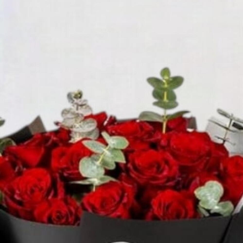 Red rose - 21 pcs eucalyptus leaves - 5 pcs