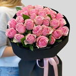 Indulge in the lavish charm of this stunning floral bouquet, comprised of approximately 51 exquisitely bloomed pink roses. Each bloom is hand-selected for its lush petals, vibrant color, and exquisite freshness
