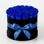 Make a bold and luxurious impression with our stunning arrangement of 21 dark blue roses in a premium black box, designed to symbolize deep love, mystery, and elegance. The rich royal blue roses beautifully contrast with the sleek black box, creating a striking and sophisticated presentation. Each rose is carefully selected and professionally tinted to achieve a deep blue shade, then arranged neatly to create a full and elegant look. This premium floral box is perfect for modern, stylish gifting and unforgettable moments. ✨ Product Details: • 21 dark blue roses (white roses professionally tinted) • Premium black box arrangement • Neatly arranged for a clean, luxurious look • Compact yet eye-catching presentation
