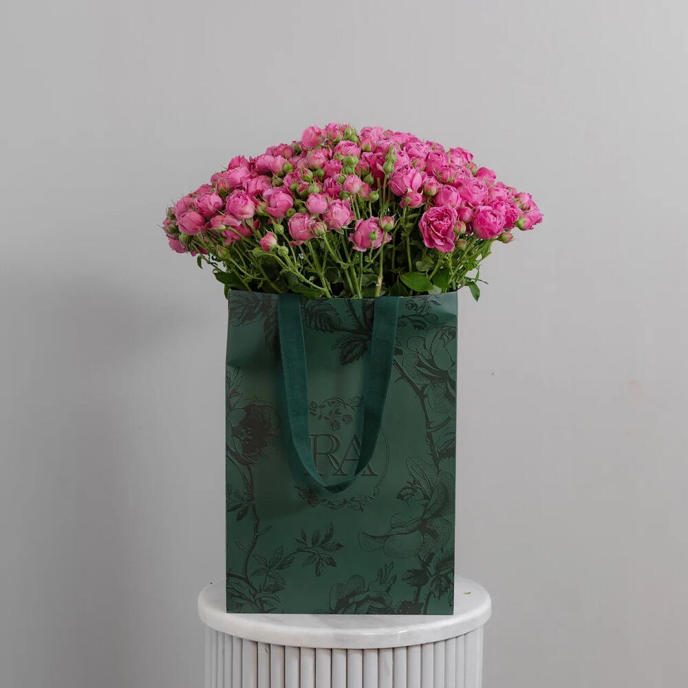 tag - 1 pcs lilac spray roses - 51 pcs protective wrapping - 1 pcs hydration pack - 1 pcs branded premium carry bag - 1 pcs personalized message envelope card - 1 pcs branded rose art ribbon - 1 pcs