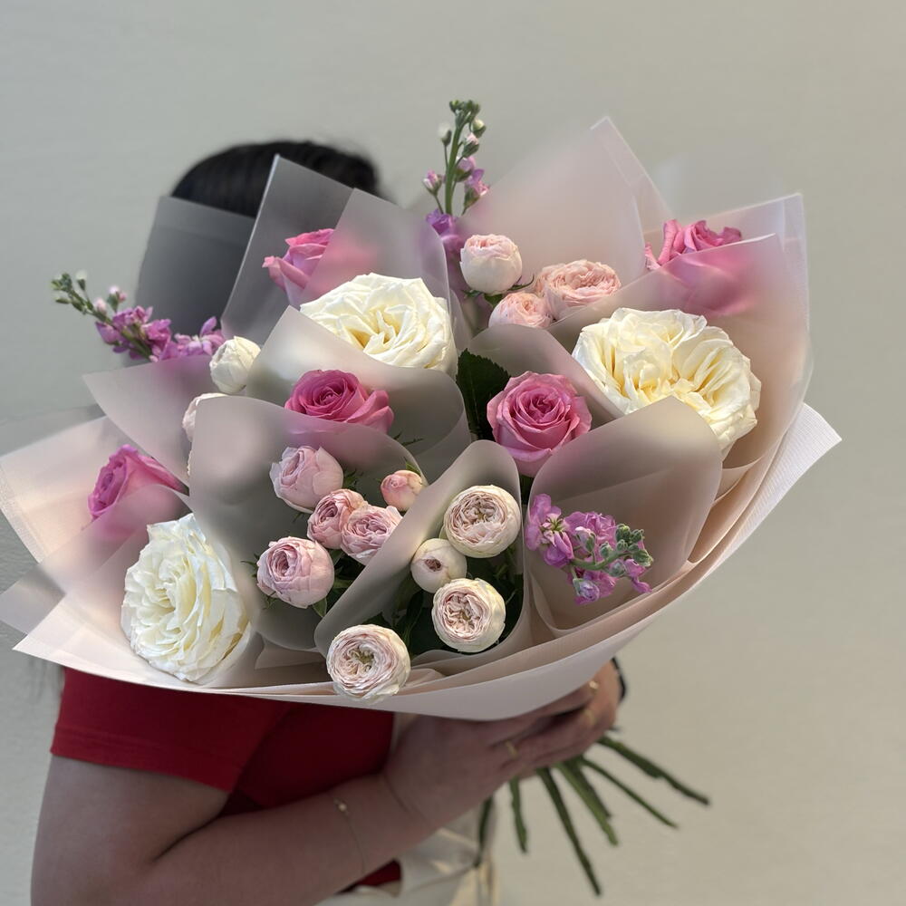 matthiola - 3 pcs revival - 5 pcs mansfield - 4 pcs rose candelight - 3 pcs
