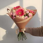 Gerbera - 3 pcs chrysanthemums - 7 pcs pink spray roses - 4 pcs