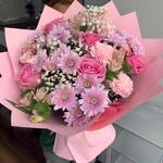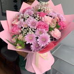 Spray rose - 2 pcs Chrysanthemum - 3 pcs Gypsophila - 3 pcs carnation - 3 pcs single rose - 5 pcs