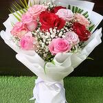 Indulge in the royal luxury of this exquisite bouquet, brimming with an assortment of 15 meticulously chosen mixed roses. Curated to perfection, these striking blooms bring together a kaleidoscope of colors, offering a symphony of beauty that is entrancing and elegant. An undeniable showstopper, this refreshing bouquet resonates with natures magnificence and charm, making it an ideal choice for any occasion that calls for a special touch.