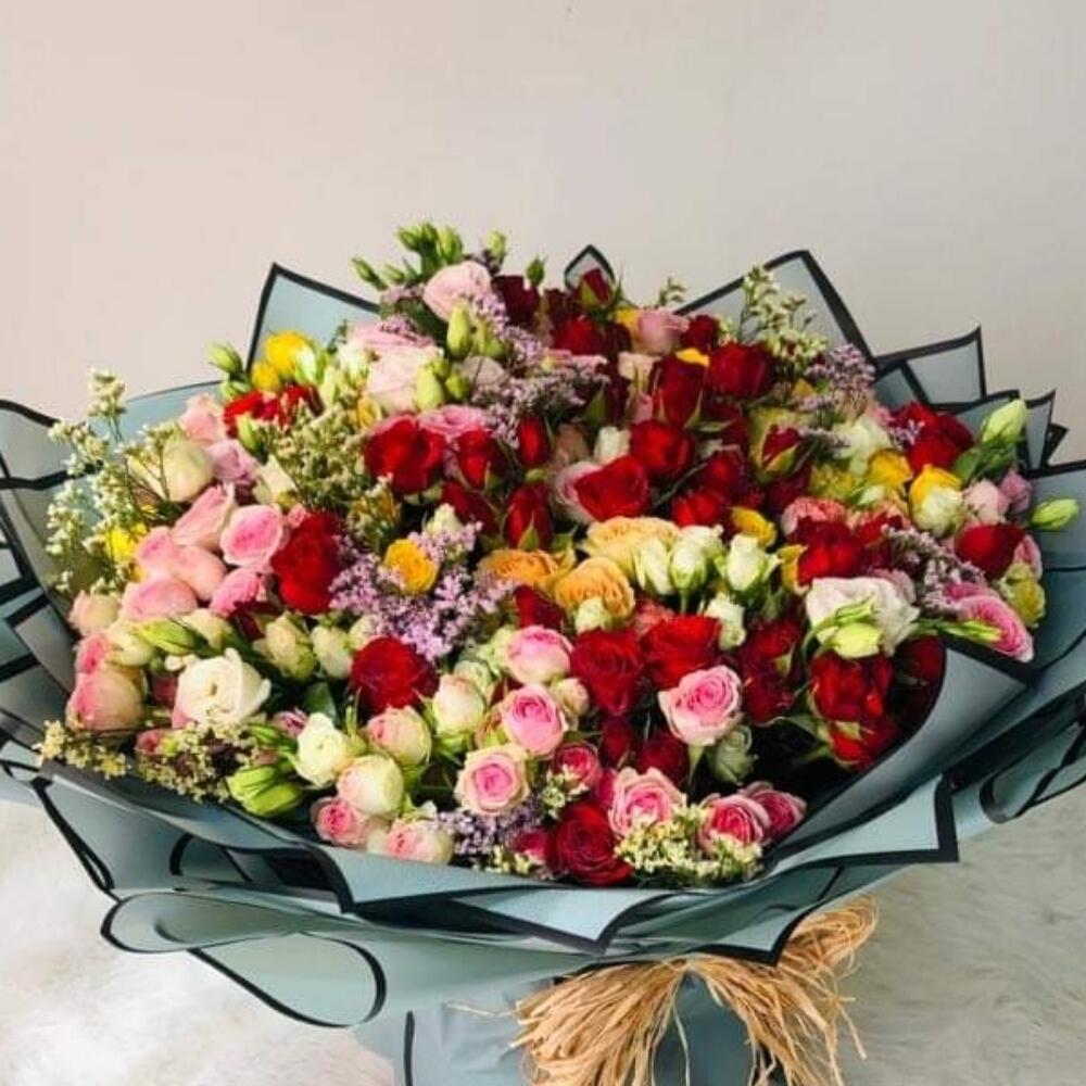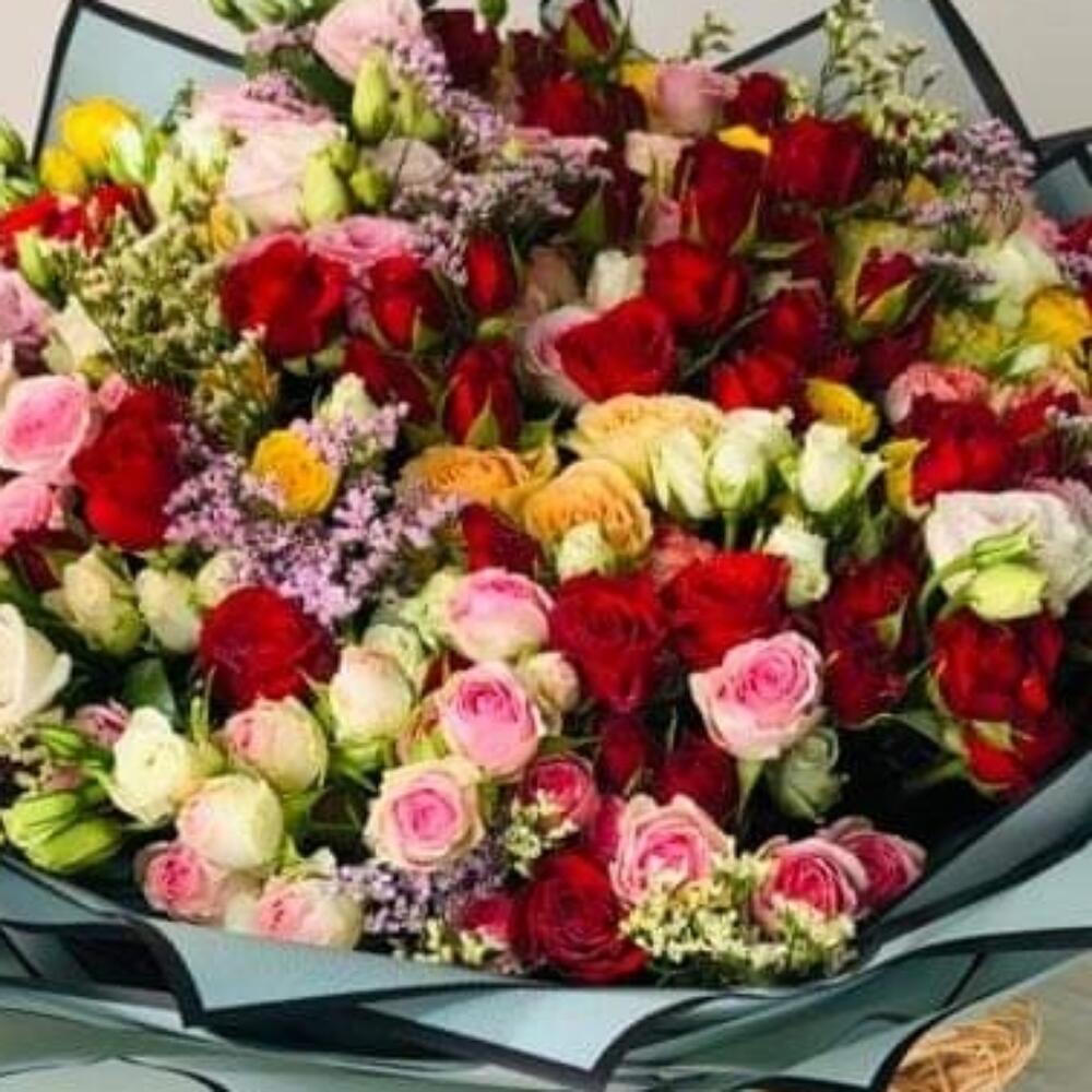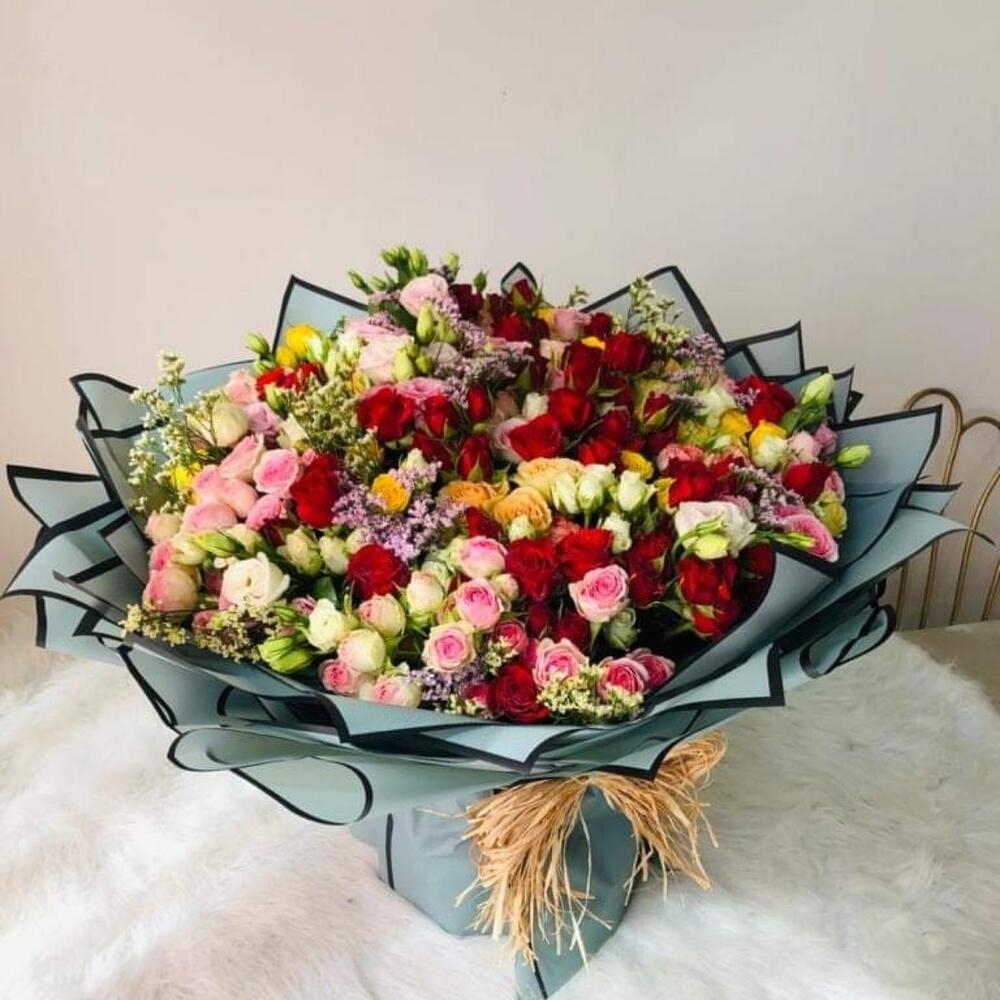 pink spray rose - 20 pcs lisianthus white - 10 pcs yellow spray rose - 20 pcs white spray rose - 10 pcs red spray rose - 20 pcs limonium pink - 10 pcs
