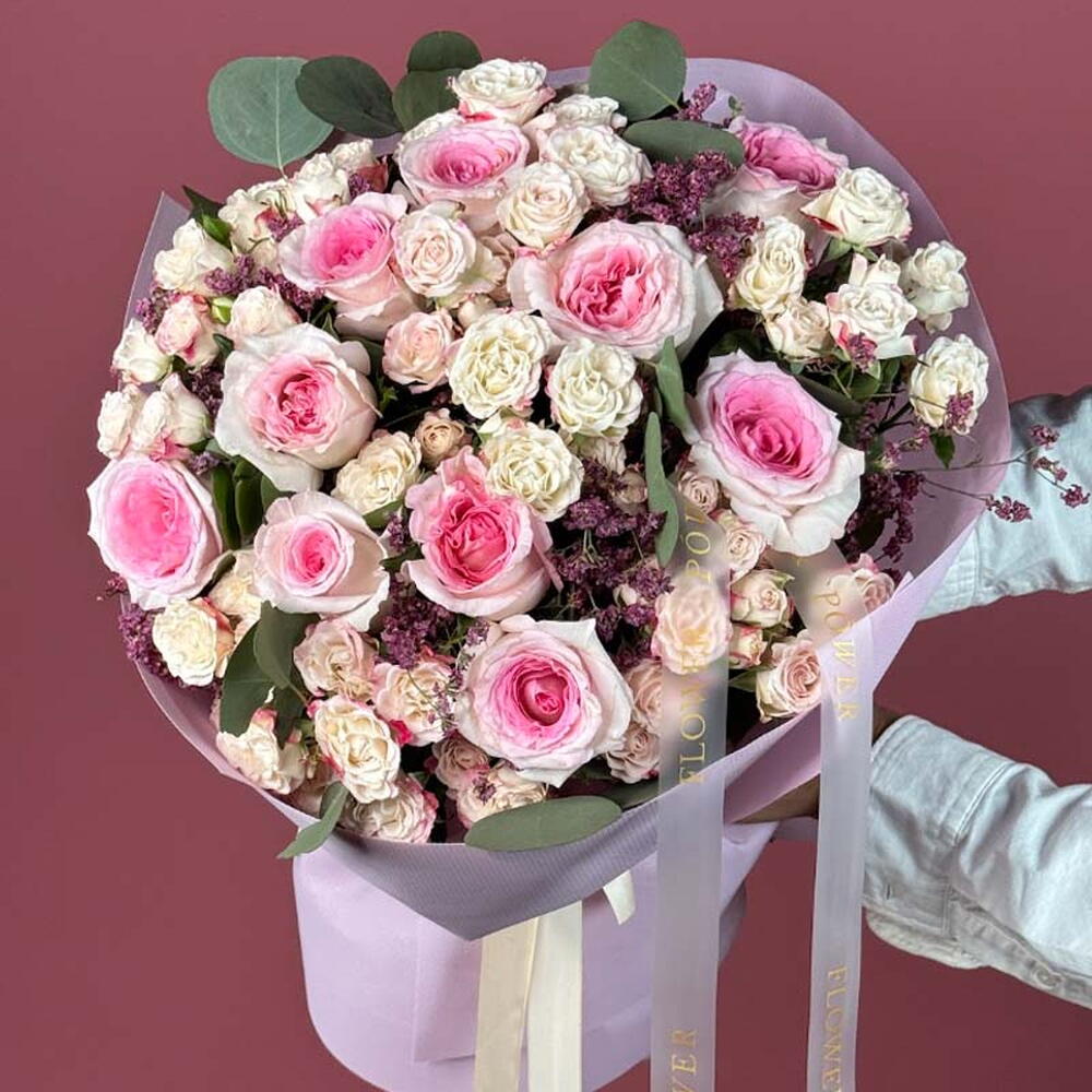 Mixed Blooms: Small Size Bouquet of Pink Roses and Limonium