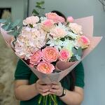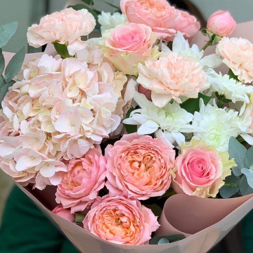 Eucalyptus - 3 pcs Hydrangea - 1 pcs Chrysanthemum - 2 pcs rose - 3 pcs carnation - 3 pcs julietta - 2 pcs