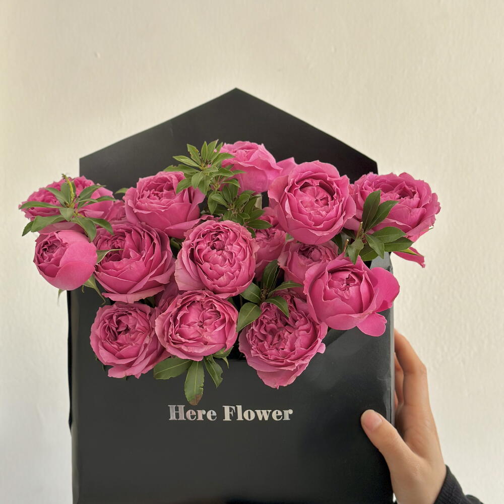 Bold and expressive, the Bright Pink Modern Envelope Rose Flower Box is designed to stand out. Featuring vibrant garden roses in a sleek black box, this arrangement brings energy and joy to any occasion.