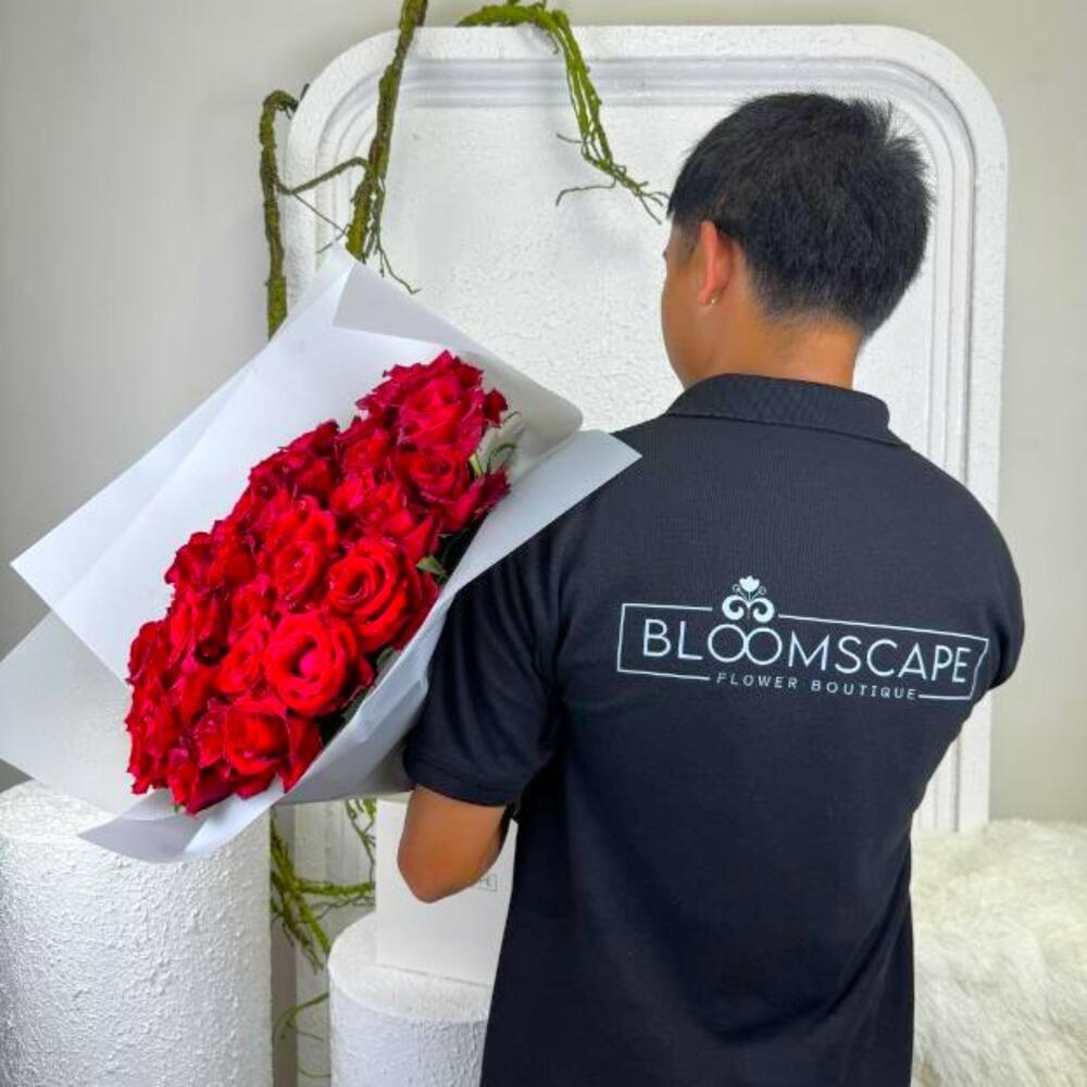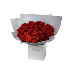 Immerse yourself in the timeless elegance of 50 resplendent, ever-red roses, meticulously selected for their exquisite beauty. These luminous blossoms exude an enchanting allure, radiating affection, passion, and grace. Perfectly nestled in a sophisticated Bloomscape paper bag, this mono bouquet breathes life and love into every corner of the room, creating a lasting impression on the hearts of those fortunate enough to behold it. The ideal expression of unspoken sentiments, this bouquet captivates the senses, making it the perfect gift for any occasion.