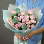 Indulge in the enchanting beauty of our bouquet, featuring stunning pink peony-shaped roses. These lush, voluminous blooms captivate with their intricate layers and delicate hues, exuding a sense of romance and elegance. One stem of spray roses may have 3 or 4 flowers