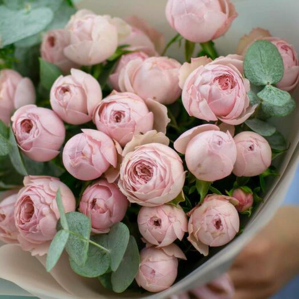 Indulge in the enchanting beauty of our bouquet, featuring stunning pink peony-shaped roses. These lush, voluminous blooms captivate with their intricate layers and delicate hues, exuding a sense of romance and elegance. One stem of spray roses may have 3 or 4 flowers