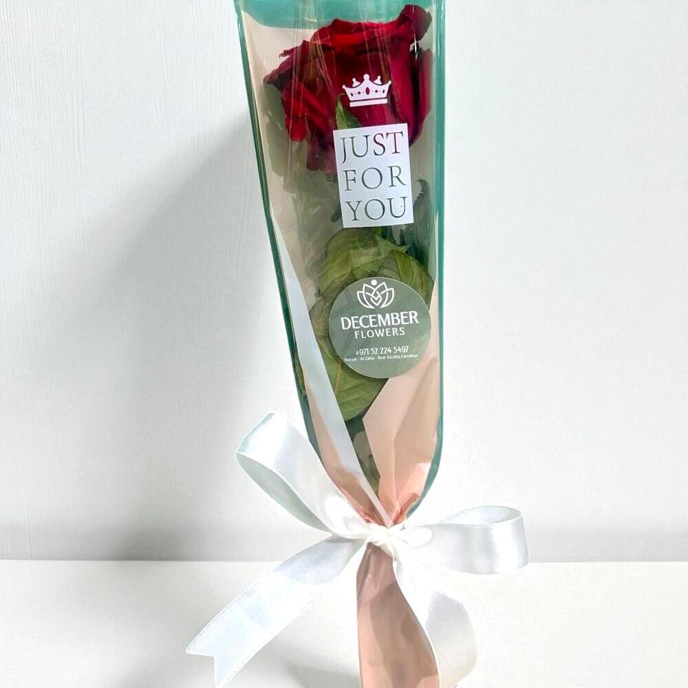 Celebrate simplicity and elegance with our Single Rose Bouquet, a timeless expression of love and admiration. Wrapped with care by December Flower UAE, this arrangement features 1 premium rose in your desired color, beautifully presented in a delicate wrap with a satin ribbon. Perfect for birthdays, anniversaries, proposals, graduations, or simply to say “I love you,” this mono bouquet is a small gesture that carries deep meaning. Care Guide To keep your single rose fresh, place it in a clean vase with cool water immediately after receiving. Trim the stem diagonally by 2 cm every two days and change the water regularly. Keep the rose away from direct sunlight, heat, and drafts to extend its natural beauty.