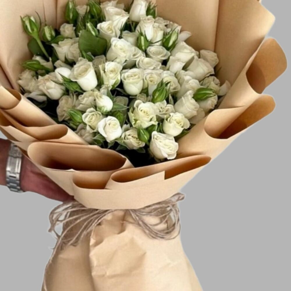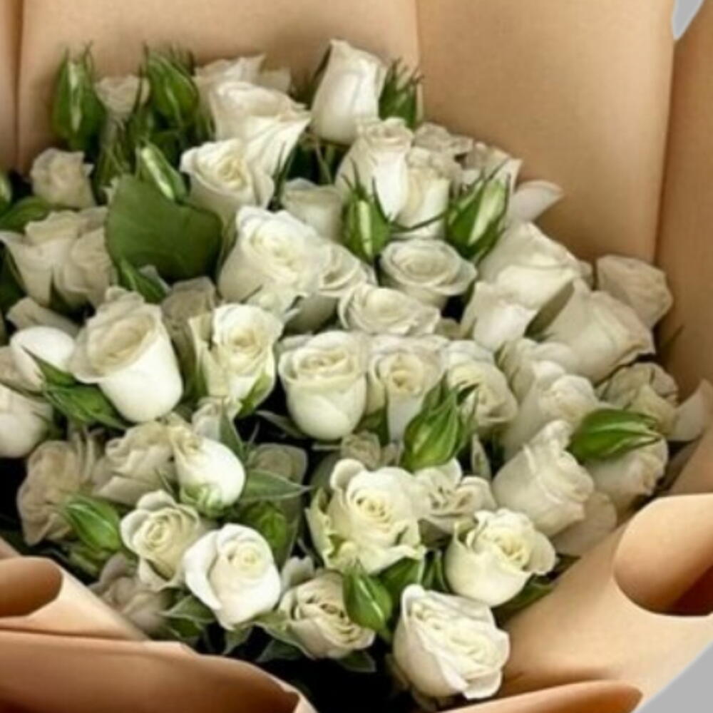 Immerse yourself in the classic beauty of this meticulously crafted bouquet featuring fresh, premium White baby roses with lush green foliage. The white baby roses symbolize affection and peaceful, making it a perfect choice for any special occasion.