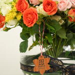 solidago yellow - 5 pcs spray rose pink - 10 pcs spray rose yellow - 10 pcs spray rose orange - 10 pcs bowl 20 d - 1 pcs