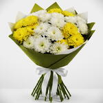 A fresh and cheerful arrangement of 11 yellow and white chrysanthemums, bringing brightness and purity together. Ideal for birthdays, congratulations, get-well gifts, and home décor. Simple, lively, and beautifully wrapped.