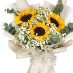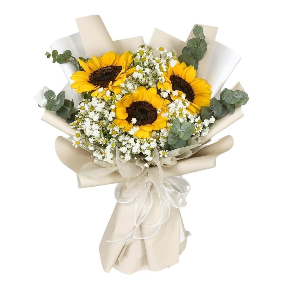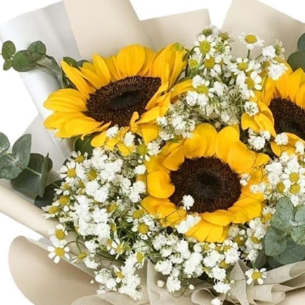 Sunflower - 3 pcs gypsophila white - 10 pcs eucalyptus leaves - 5 pcs