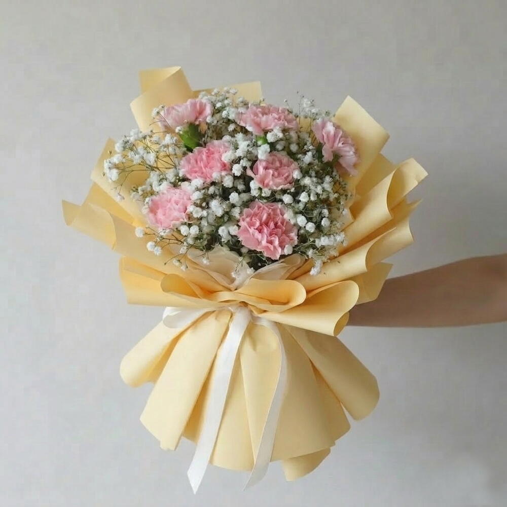 Gypsophila - 5 pcs pink carnations - 9 pcs