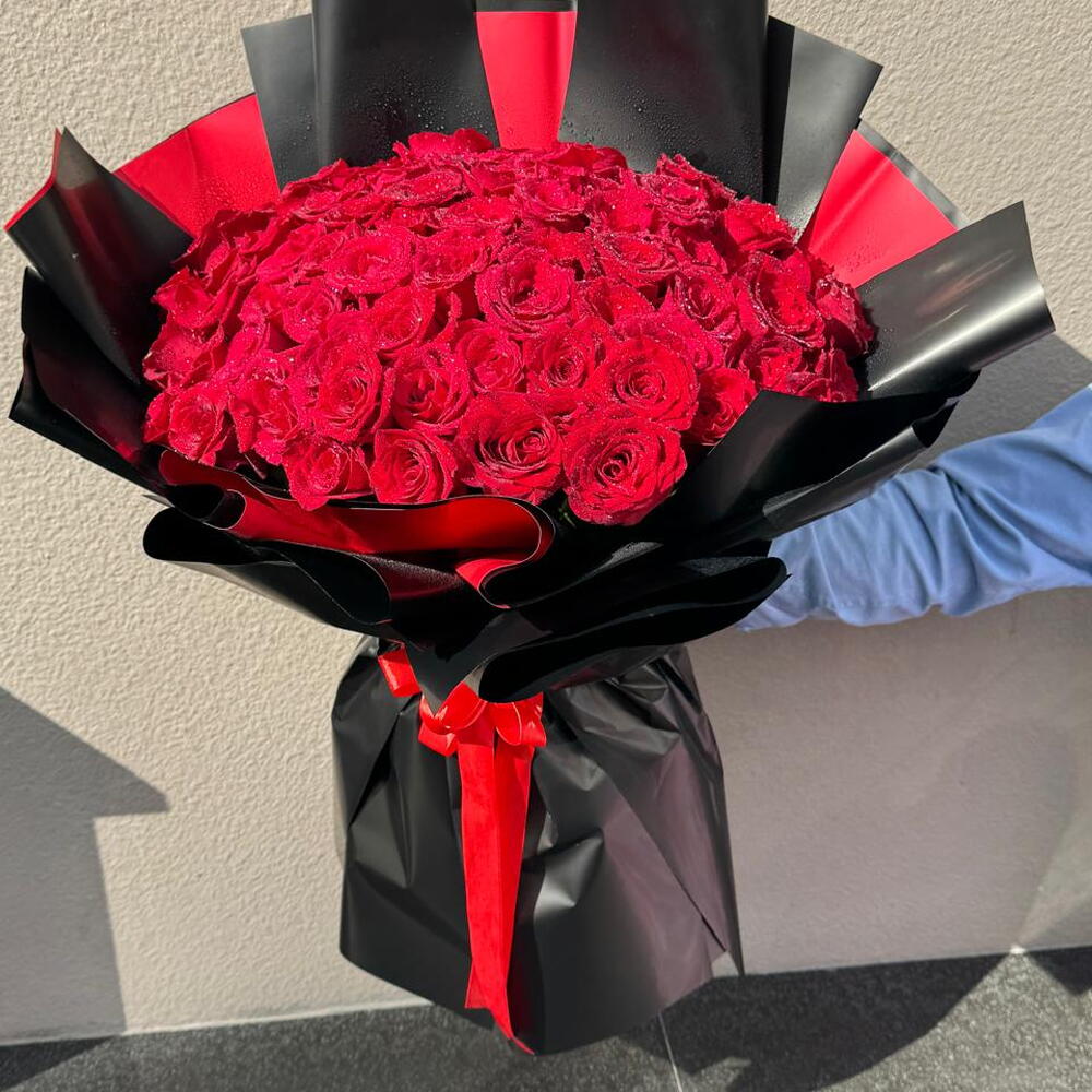 Unveil the profound passion you hold within your heart with this exquisite Mono Bouquet. Composed of 75 carefully selected red roses, each bloom stands as a testament to your enduring love and adoration. This remarkable assembly of roses, in its radiant hues of deep and passionate red, exudes an irresistible charm, making it an ultimate symbol of romantic gestures. Whether its a special occasion or just because, this Mono Bouquet is your perfect messenger of love and affection.