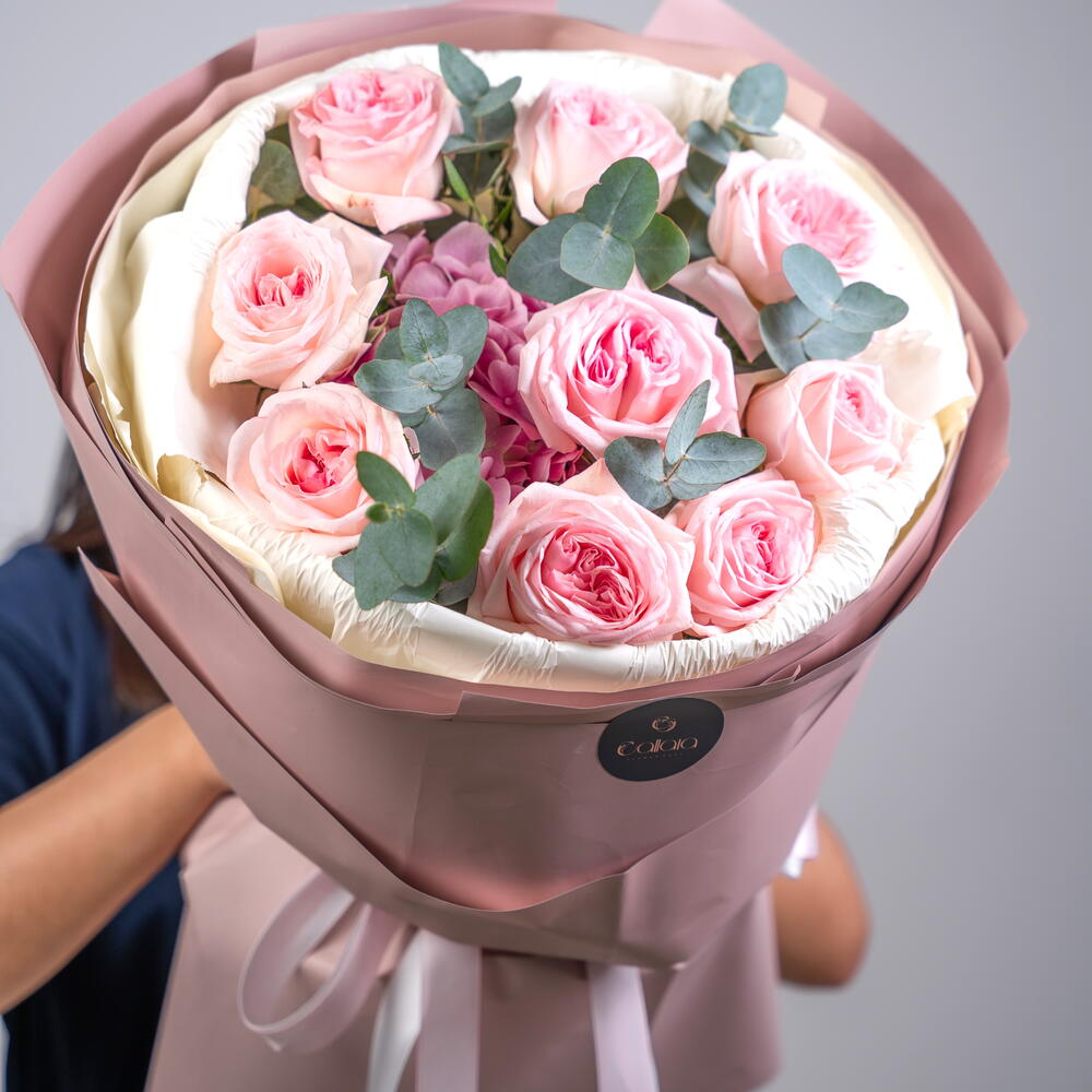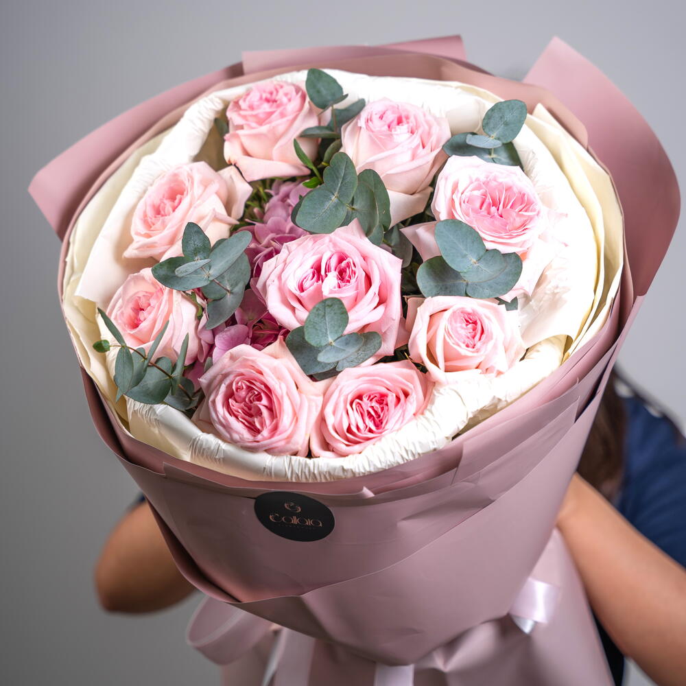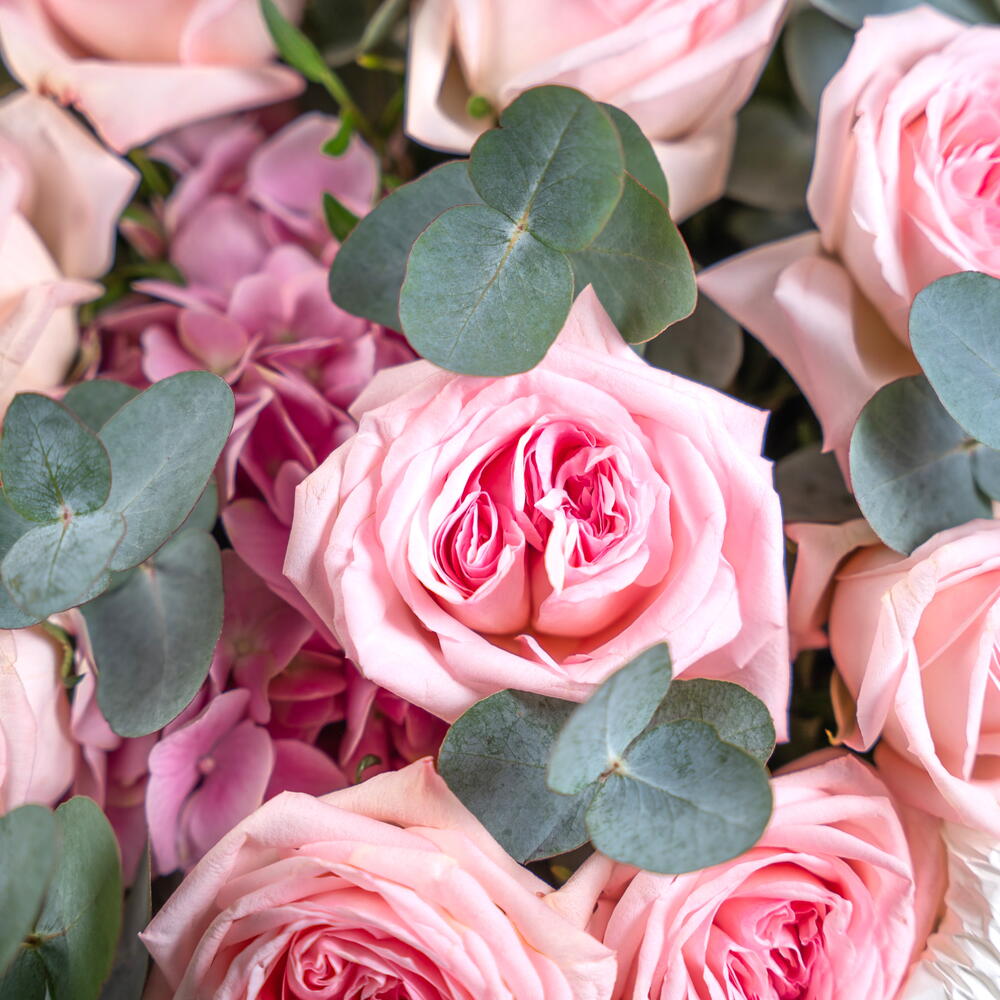 Eucalyptus - 5 pcs hydrangea pink - 1 pcs ohara pink - 9 pcs