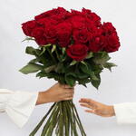 Delight in the timeless elegance of 20 freshly-picked, radiant red roses, bundled together in perfect harmony. Each bouquet is thoughtfully wrapped with 4 pieces of luxurious ribbon, promising to add a touch of sophistication to any occasion. Succumb to the allure of natures beauty with our florist’s special selection.
